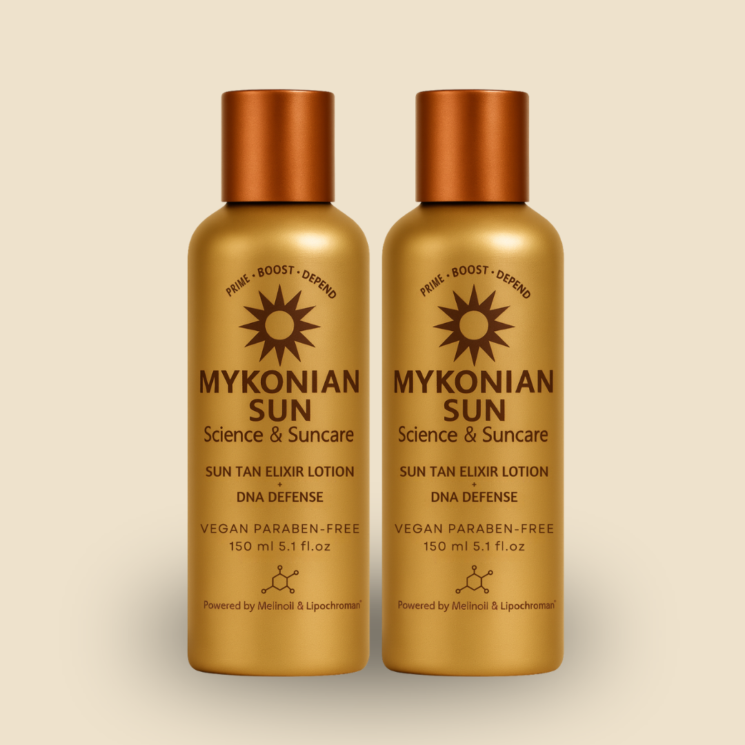 Double your glow with the Sun Elixir Lotion Duo, designed to hydrate, nourish, and support your skin while you tan. Formulated with Melon Oil peptides and Lipochroman®, this advanced lotion helps protect skin from oxidative stress while promoting a bronzed, radiant tan.Lightweight yet deeply moisturising, Sun Elixir keeps skin supple and luminous throughout sun exposure — making it the perfect daily tanning companion.